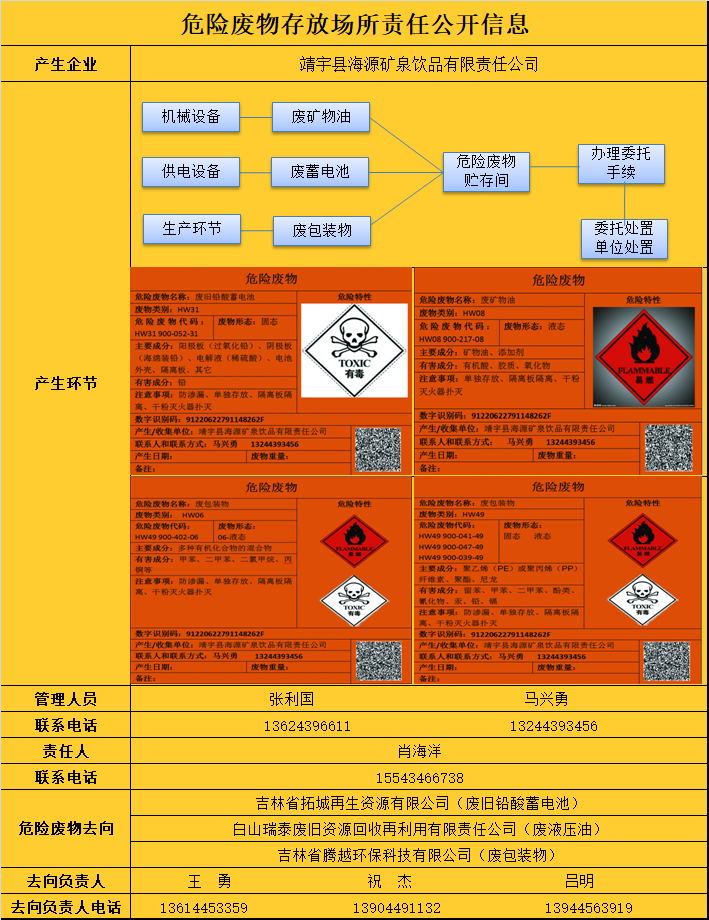 危险废物存放场所责任公开信息